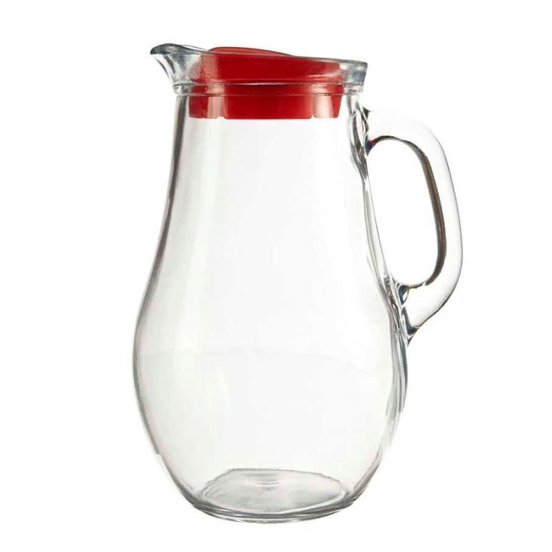 Jarra vidrio 2 L tapa roja bistro Pasabahce