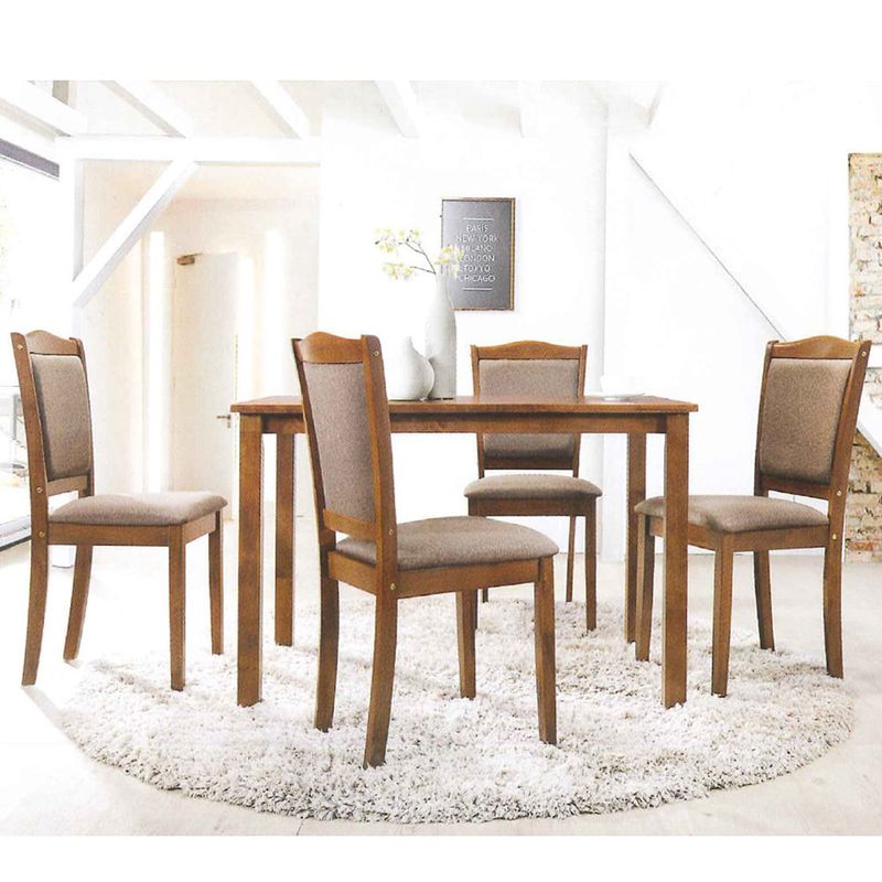 Dale elegancia y presencia a tu hogar con este hermoso juego de comedor súper fuerte en madera compuesto por mesa + 4 sillas. Este artículo se vende en caja, el armado no está incluido, usted puede contactar a un armador externo llamando a nuestro servicio de Atención al Cliente. El artículo ofrecido es el que corresponde a la descripción, cualquier accesorio es meramente ilustrativo.