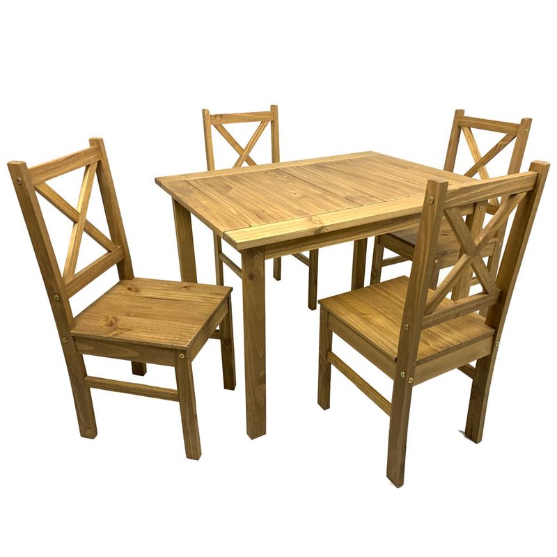 Juego de comedor rústico 4 sillas 75x107x78 cm, ideal para tu hogar, producto de excelente calidad. Este artículo se vende en caja, el armado no está incluido, usted puede contactar a un armador externo llamando a nuestro servicio de Atención al Cliente. El artículo ofrecido es el que corresponde a la descripción, cualquier accesorio es meramente ilustrativo.