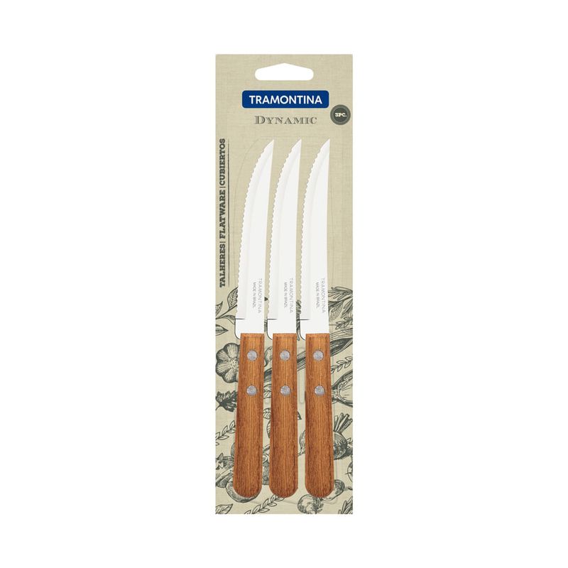 Saborear esa carne a la parrilla ahora es mucho más fácil con el Juego de Cuchillos para Barbacoa y Frutas Tramontina Dynamic con hojas de acero inoxidable y mangos de madera natural de 3 piezas. Los cuchillos del juego garantizan resistencia y durabilidad y tienen un filo de gran potencia, debido al tratamiento térmico de las hojas de acero inoxidable. Los tiradores son de madera natural con remaches de aluminio y aportan un estilo más rústico a la composición de tu mesa. ¡El conjunto perfecto para acompañarte en los mejores momentos!