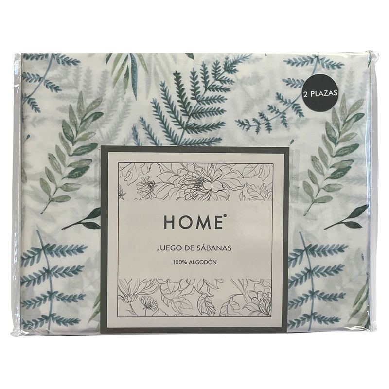 Juego de Sábanas HOME Full 180 hilos blanco con hojas 100% algodón