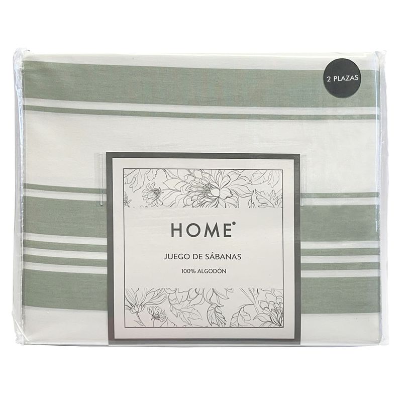 Juego de Sábanas HOME Full 180 hilos blanco/verde con franjas