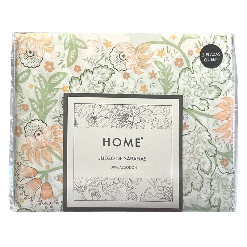 Juego de Sábanas HOME Queen 180 hilos beige/blanco estampada