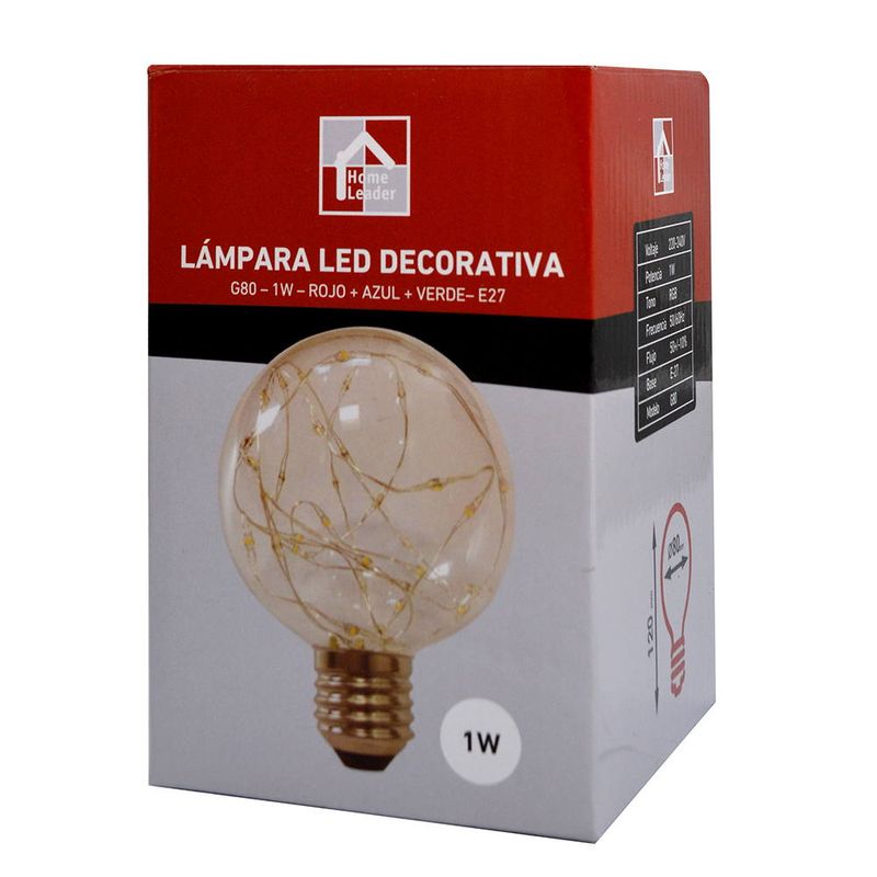 Lámpara HOME LEADER led deco G80 1 w e27 ro+az+ve