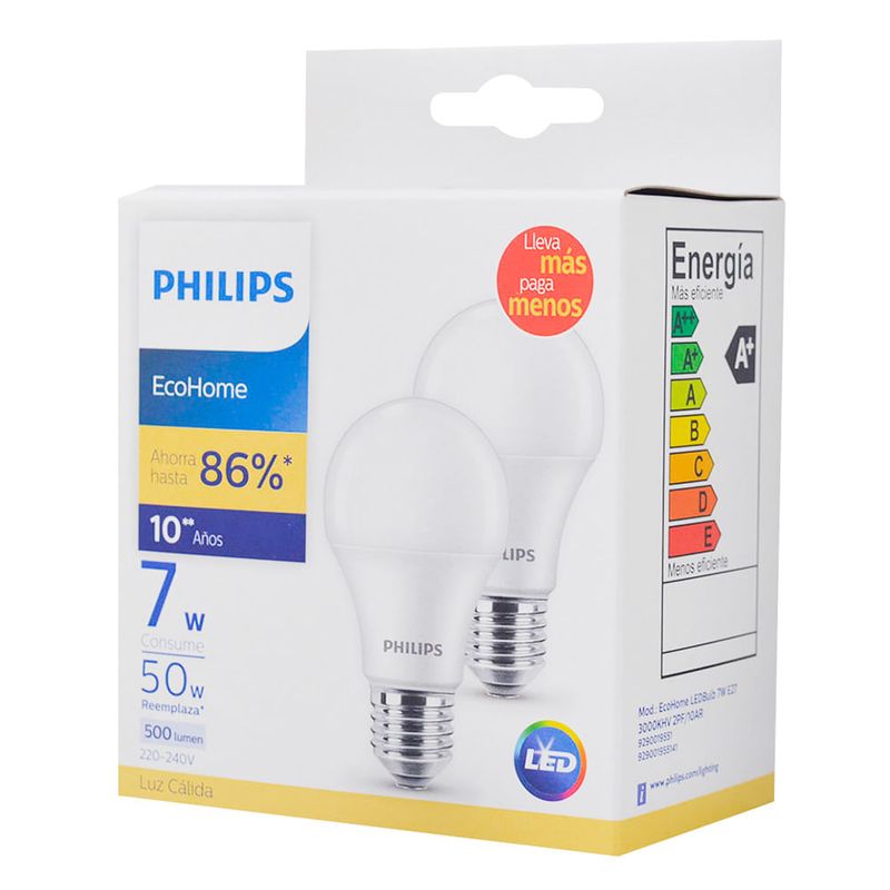 Lámpara LED PHILIPS Ecohome cálida 7 W x 2 un.