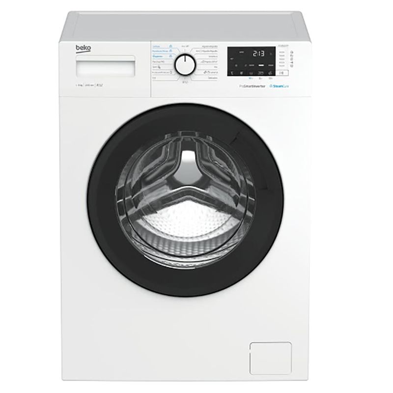 Lavarropas BEKO WTA8612. Capacidad 8 kg. Carga frontal, 1200 Rpm; Cuenta con 11 Programas; Motor Pro Smart Inverter. 12 años de Garantía. Medidas 60x86x60 cm (Ancho x alto x prof).