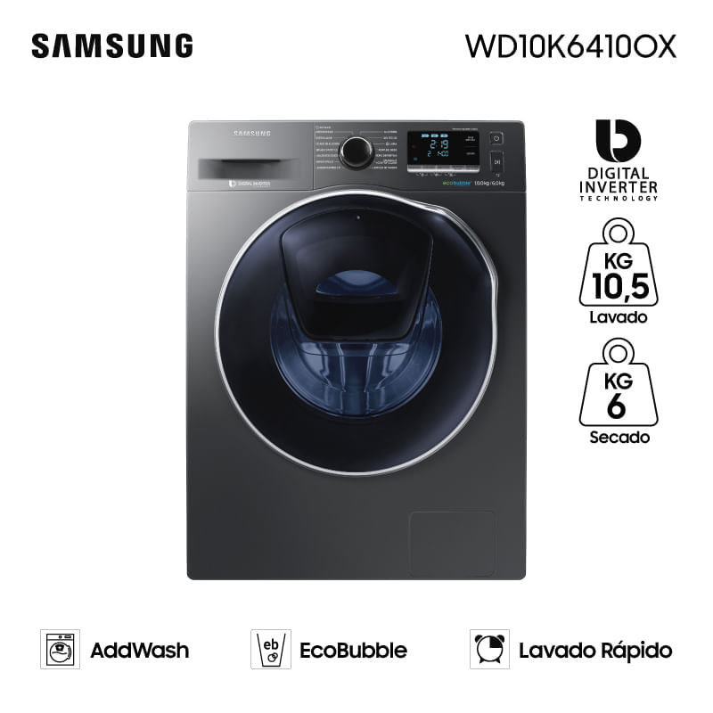 Este excelente lavasecarropas cuenta con una capacidad de lavado de 10,5kg de carga y 6 kg de secado. Motor digital inverter de 1400rpm de centrifugado, ofreciendo así el mejor lavado. Para mayor comodidad al ingresar o retirar las prendas su sistema de carga es de tipo frontal. Producto de excelente calidad.