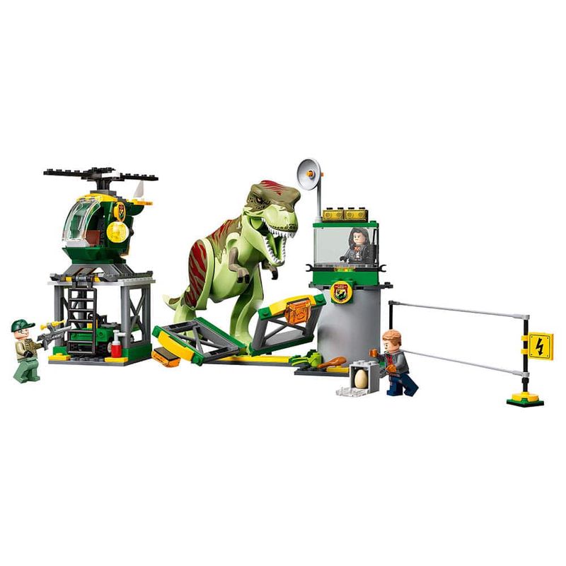 Vigila las puertas: ¡un T. rex anda suelto! Ayuda a Claire y al científico a cuidar del pequeño dinosaurio y los huevos mientras el guardia sube la escalera para avisar si ve al dinosaurio gigante. Engancha el perrito caliente al brazo robótico y distrae al T. rex para que se aleje de la puerta. Carga entonces los huevos en el camión, abre las puertas, ¡y pisa a fondo para ponerlos a salvo! Vuelve a disfrutar de la intensa emoción de Jurassic World. Prepárate para participar en una trepidante huida y escapar del T. rex. Ayuda a Claire a deshacerse del T. rex. Escapa atravesando las puertas. Modelos fáciles de construir. Los sets LEGO Juniors contienen ladrillos para principiantes. Distrae al T. rex con un perrito caliente. Usa el brazo robótico para permanecer alejado de sus peligrosas fauces. Un violento T. rex anda suelto. La terrorífica bestia ha derribado la valla. Una forma divertida y rápida de adquirir confianza a partir de 4 años. Incluye minifiguras de Claire, un científico y un guardia. También un T. rex, una cría de dinosaurio y accesorios para divertirse inventando emocionantes aventuras.