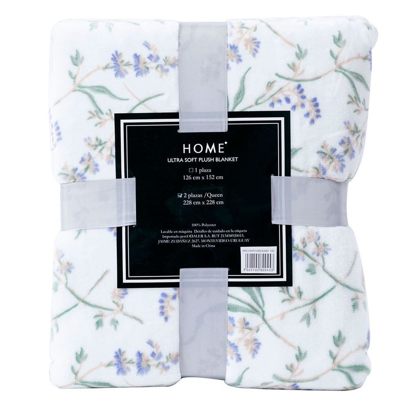 Manta de franela King Size blanco con flores 228x228 cm