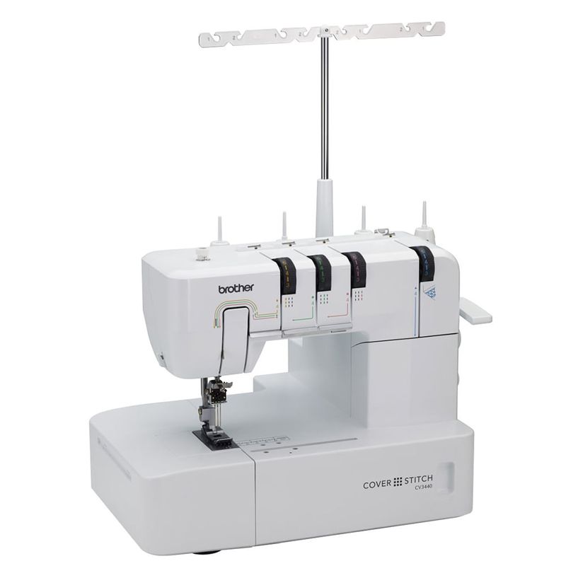La CV3440 es una máquina cover stitch avanzada que le permite crear una amplia gama de puntadas en diferentes tipos y grosores de telas, tanto para aplicaciones decorativas como constructivas. Provee puntadas cover triples de un lado, puntadas cover anchas, puntadas cover estrechas, al igual que puntada de cadeneta. Otras características incluidas son un amplio espacio de trabajo, brazo libre, cortador e hilo, luz LED, enhebrado sencillo con indicación a color, y pie prensatela a presión. El selector de ajuste del largo y alimentador diferencial están ahora convenientemente localizados en el lado derecho de la máquina. Con tres agujas y un ancora de hilo, la CV3440 puede crear dobladillos profesionales, puntadas en cadena y puntadas decorativas.