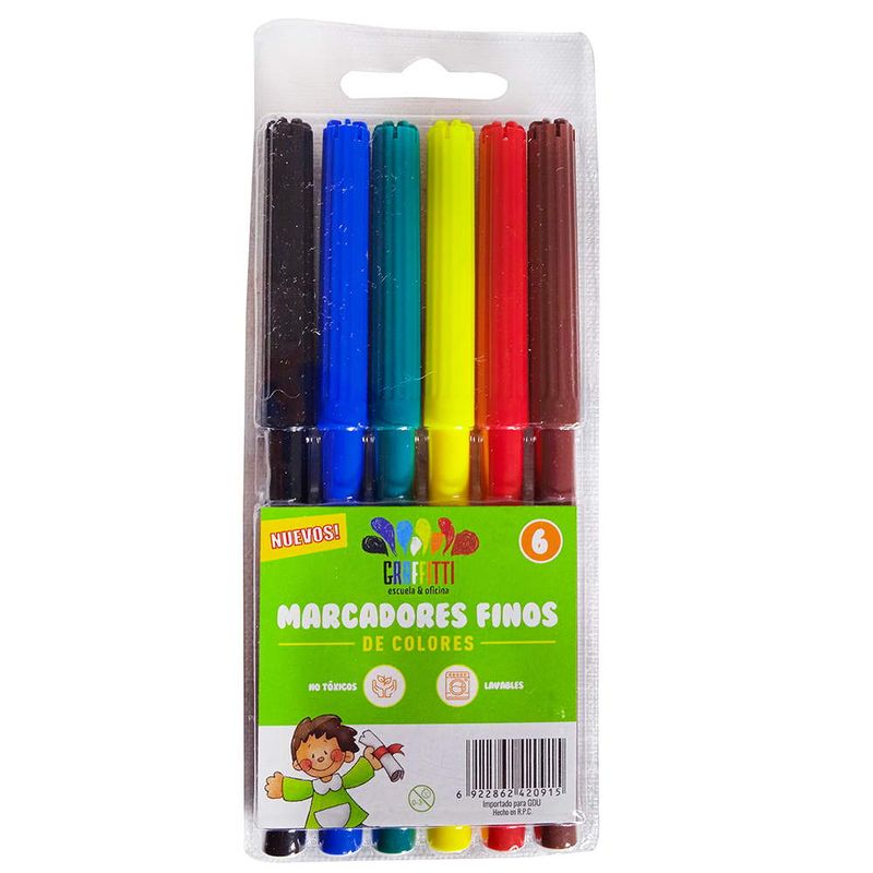 Marcadores GRAFFITTI finos 6 unidades. Producto de excelente calidad