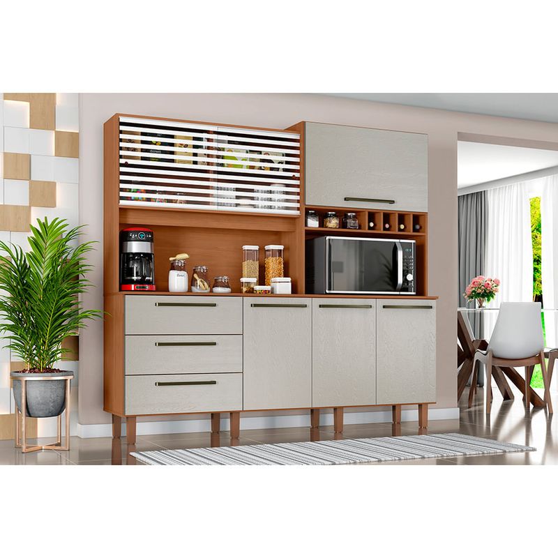 La solución perfecta para maximizar tu espacio y organizar tu cocina con estilo. Con seis amplias puertas, almacena tus utensilios, alimentos y electrodomésticos de manera ordenada y accesible. Los tres cajones adicionales ofrecen un lugar ideal para cubiertos y otros elementos esenciales. Fabricado con materiales duraderos y un diseño moderno, este kit es la combinación perfecta de funcionalidad y estética para cualquier hogar