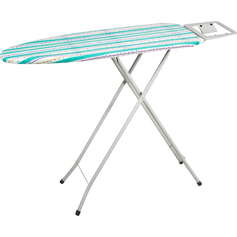Fácil de plegar y guardar, altura regulable. Cuenta con soporte para plancha y una amplia superficie de planchado,