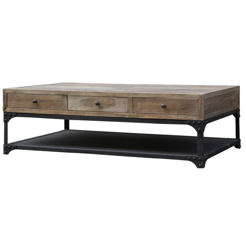 Mesa ratona en madera y hierro con cajones 140x90x45 cm, ideal para tu hogar. Este artículo se vende en caja, el armado no está incluido, usted puede contactar a un armador externo llamando a nuestro servicio de Atención al Cliente. El artículo ofrecido es el que corresponde a la descripción, cualquier accesorio es meramente ilustrativo.