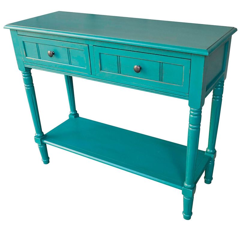 Dale un look vintage a tu hogar! Hermosa y práctica mesa estilo retro con dos cajones, construida en madera maciza de gran calidad y excelente terminación. Ideal para cualquier ambiente de tu hogar. Este artículo se vende en caja, el armado no está incluido, usted puede contactar a un armador externo llamando a nuestro servicio de Atención al Cliente. El artículo ofrecido es el que corresponde a la descripción, cualquier accesorio es meramente ilustrativo.