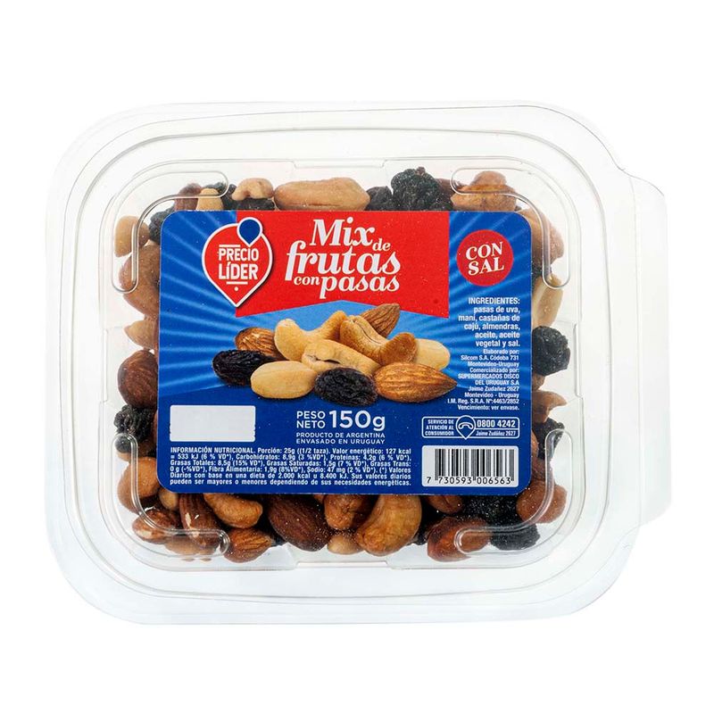 Mix de frutos secos con sal y con pasas PRECIO LÍDER 150 g