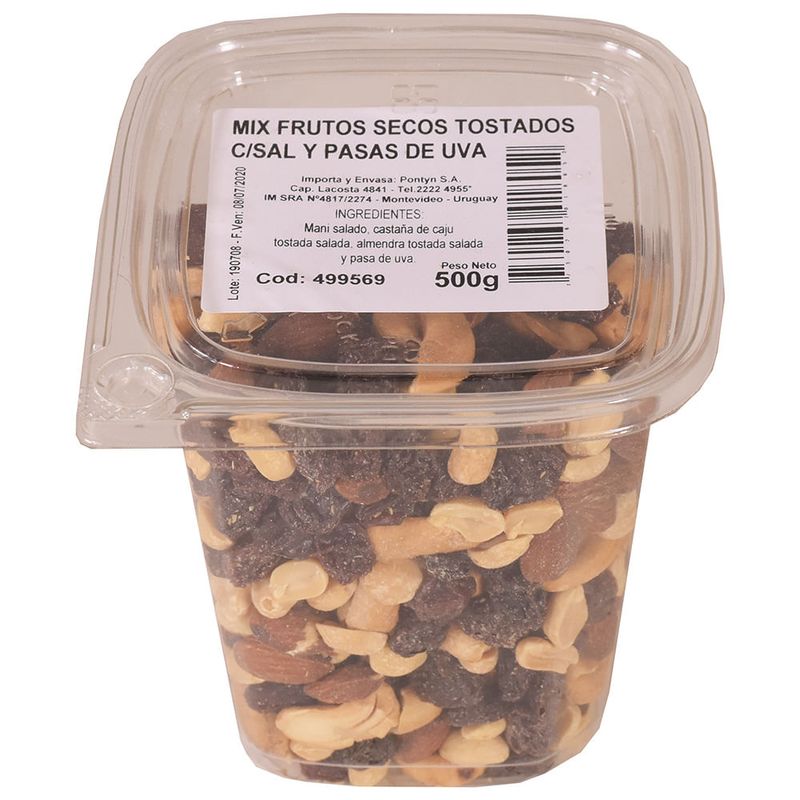 FrescosFrutas y verdurasFrutos secosMix frutos secos salado y pasa morena 500 g