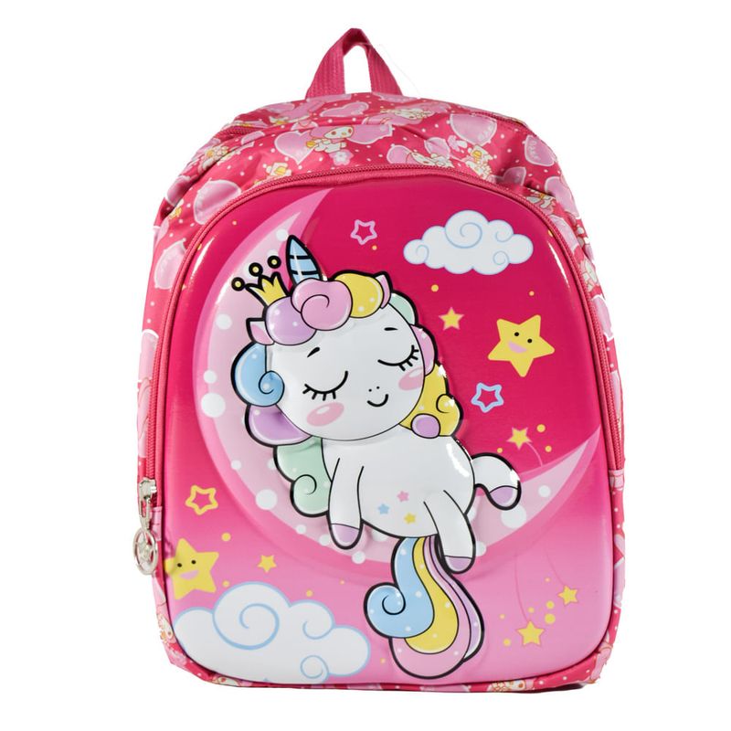 Mochila Unicornio 12, tamaño 31x26x12 cm en rosa o violeta. Diseño encantador con detalles de unicornio para alegrar cualquier día escolar.