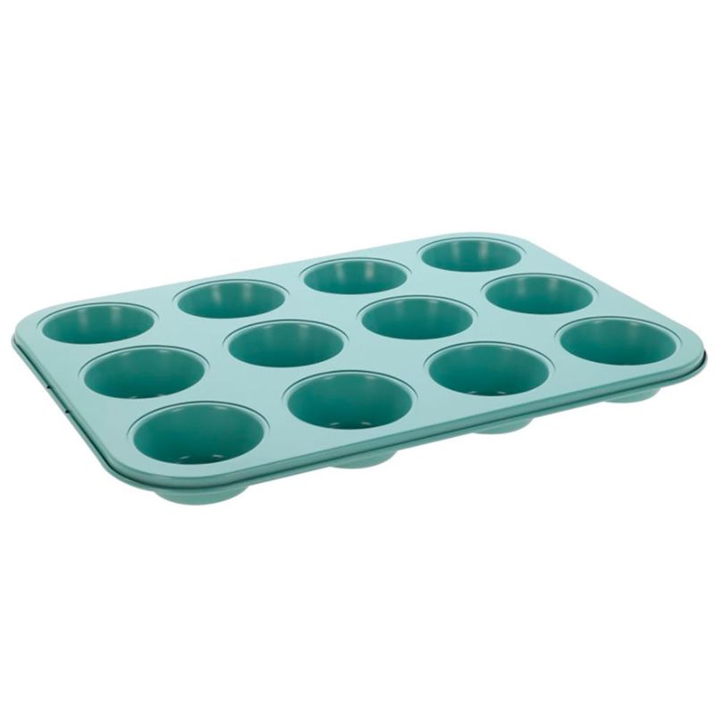 El molde para muffins de 12 cavidades en color verde es perfecto para hornear deliciosos muffins de manera uniforme y sin que se peguen. Su material antiadherente garantiza una fácil limpieza. Ideal para hacer postres caseros y sorprender a familiares y amigos. ¡Un básico en tu cocina!