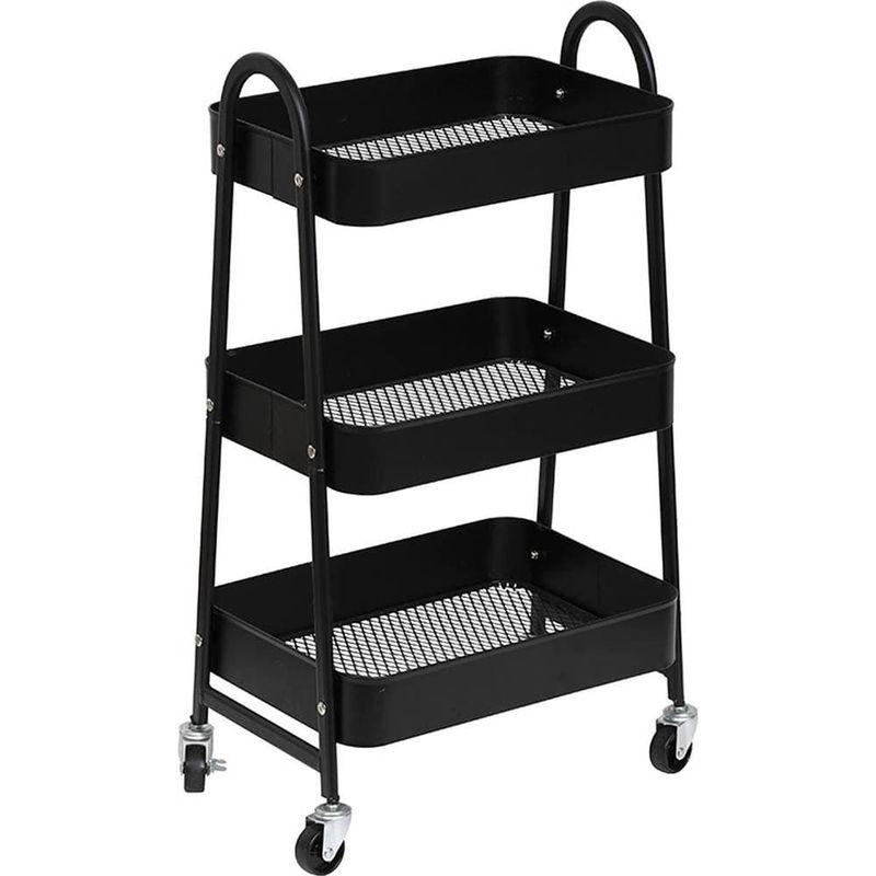 Mueble con ruedas 3 niveles - negro mate 31x79x43,5 cm