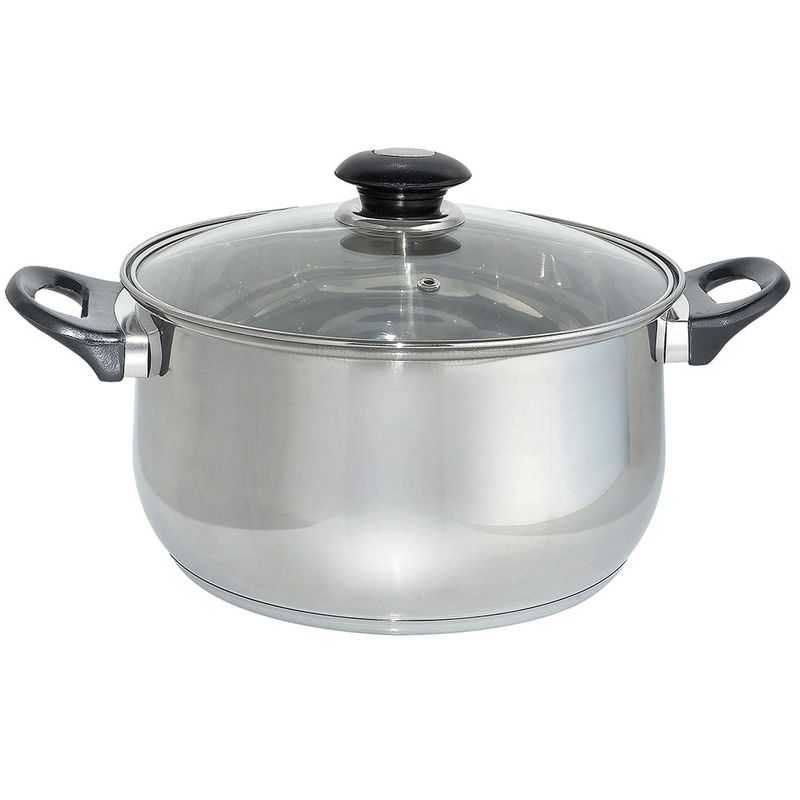 Olla 16x10cm acero inoxidable giulia. Cuenta con asas de bakelita con cortafuegos, triple fondo y tapa de vidrio templado. Capacidad 2 L. Apto para inducción. ¡Producto de excelente calidad!