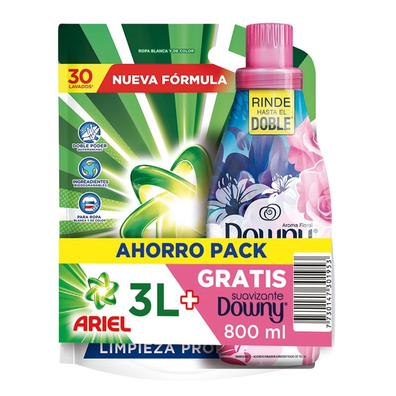 Pack detergente líquido Ariel diluido 3 L + suavizante Downy 800 ml