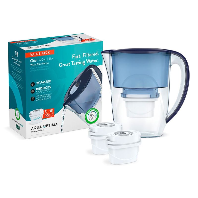 El pack Jarra ORIA azul + 3 filtros ofrece la combinación perfecta de estilo y funcionalidad. La jarra, en tono azul vibrante, junto con los 3 filtros, proporciona una experiencia de filtrado de agua conveniente y con un toque de elegancia en tu hogar.