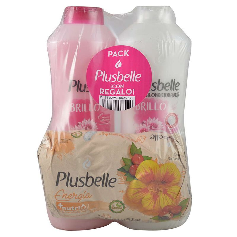 Pack PLUSBELLE shampoo 1L + acondicionador 1L + jabón tripack energía. Producto de calidad.