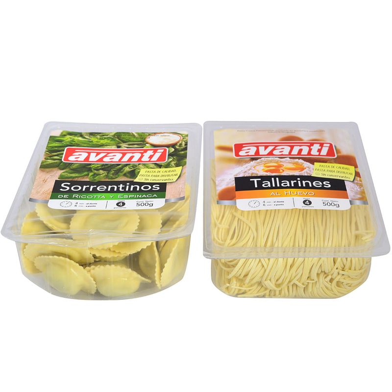 Pack sorrrentinos Avanti ricotta y espinaca + tallarines Avanti 1 kg