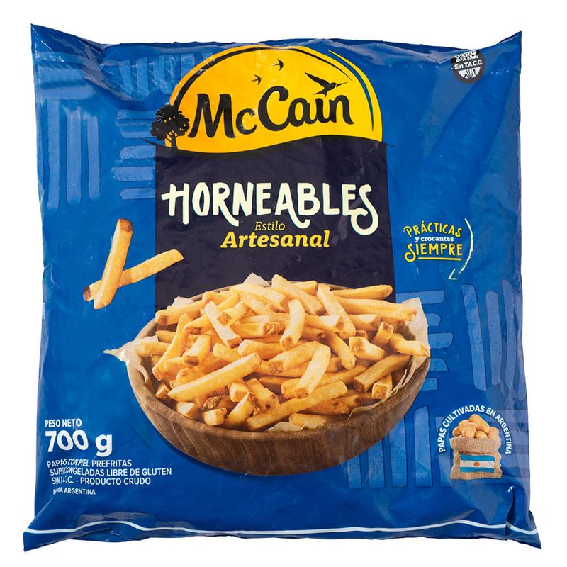 Las Papas Mc.Cain estilo artesanal son deliciosas y crujientes, listas para disfrutar en cualquier momento. Con un empaque de 700 gramos, son la opción perfecta para acompañar tus comidas favoritas con un toque casero y auténtico. ¡Una deliciosa opción para toda la familia!