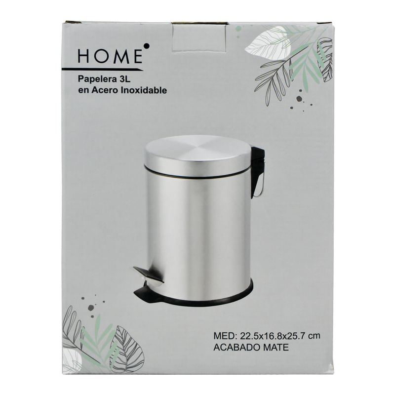 Papelera de acero con pedal, capacidad de 3L. Dimensiones: 22,5 x 16,8 x 25,7 cm. Acabado mate, ideal para baños u oficinas. Cuenta con cubeta interna extraíble para fácil limpieza y tapa de cierre suave que reduce ruidos y olores. Moderna, resistente y funcional.