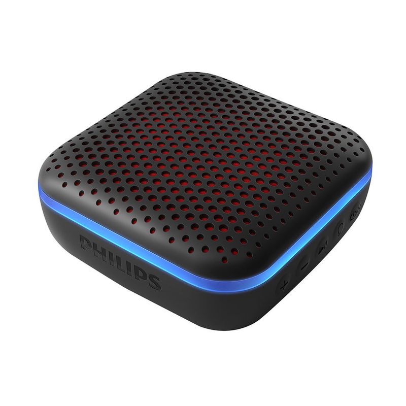 Llevá la fiesta a cualquier parte con este parlante compacto y resistente al agua que se ilumina al ritmo de la música. La correa de transporte facilita ir a donde quieras y tienes 10 horas de tiempo de reproducción. ¡Más que suficiente para un picnic en el jardín o una fiesta en la piscina!
