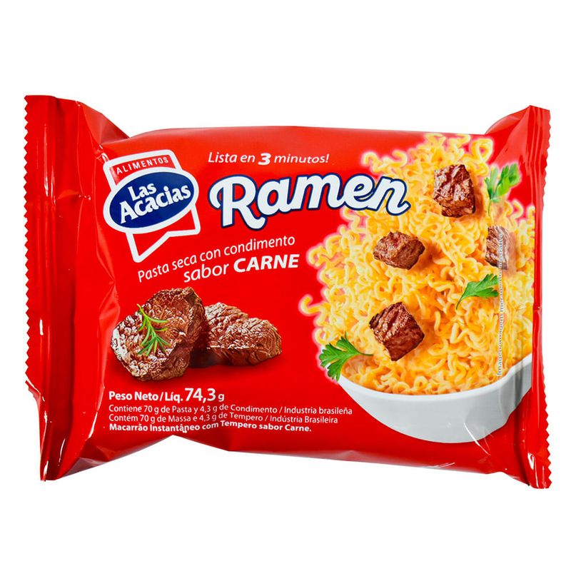Pasta instantánea LAS ACACIAS sabor carne de 743 g. Rápida y fácil de preparar, ideal para una comida deliciosa en minutos. Perfecta para cualquier ocasión, ofrece un sabor irresistible y reconfortante.