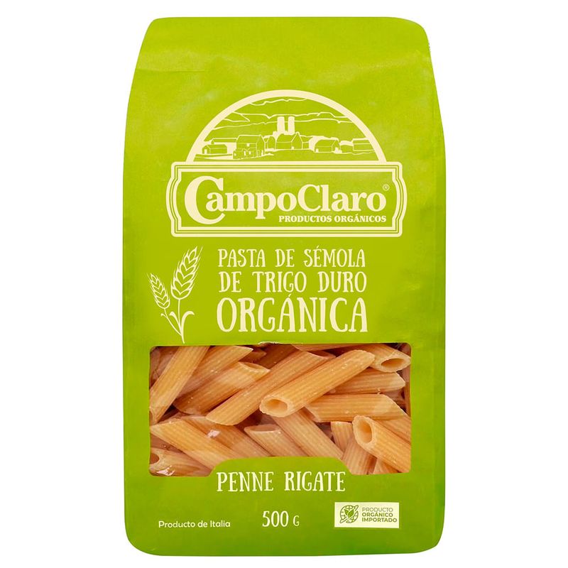 Penne Rigate Trigo Duro Orgánico CAMPOCLARO de 500 g, perfectos para platillos italianos. Elaborados con trigo duro de alta calidad, ofrecen una textura al dente y sabor auténtico, ideales para disfrutar con salsas.