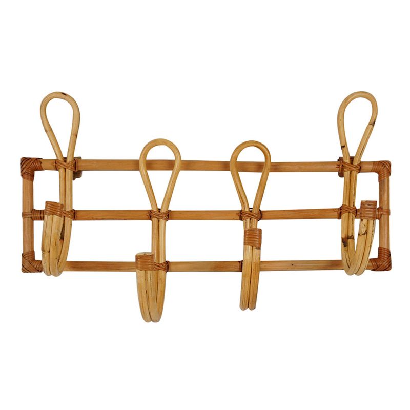 Perchero de rattán 4 ganchos 57x35x18 cm natural