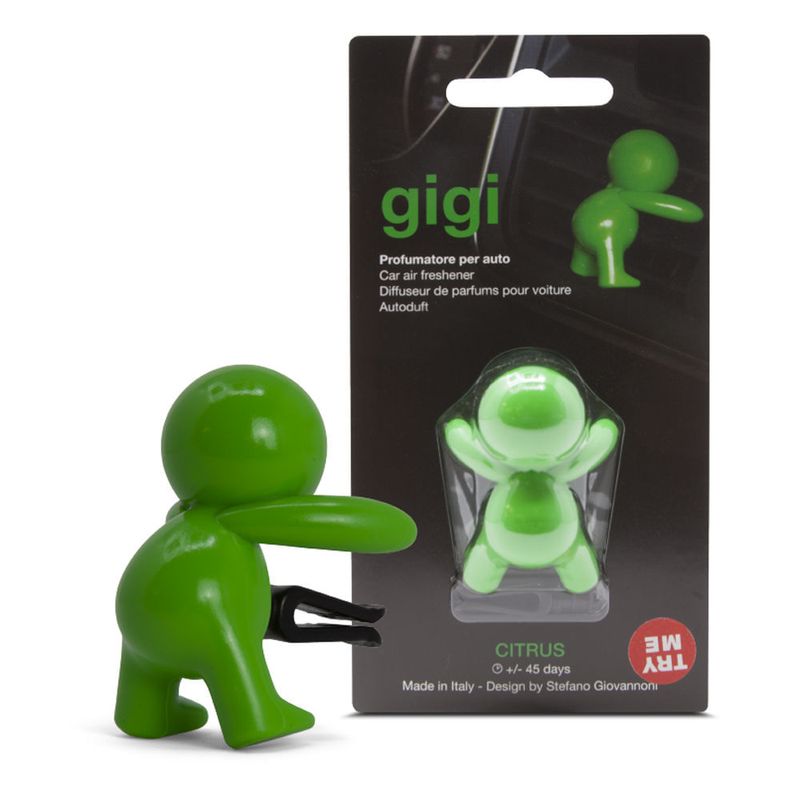 Gigi es un ambientador que se puede ajustar a todo tipo de autos. Hecho en Italia. Diseño de Luca Trazzi.