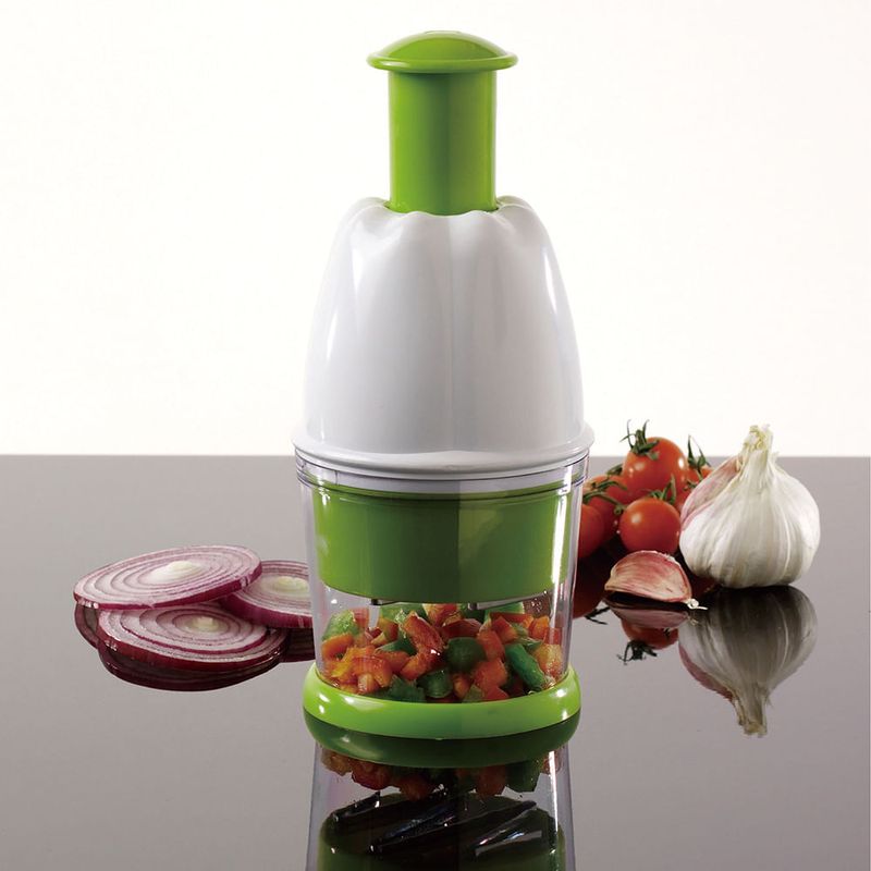 Picadora manual de 22,5x10 cm, ideal para picar alimentos de forma rápida y sencilla sin necesidad de electricidad. Perfecta para preparar salsas, guisos y más.