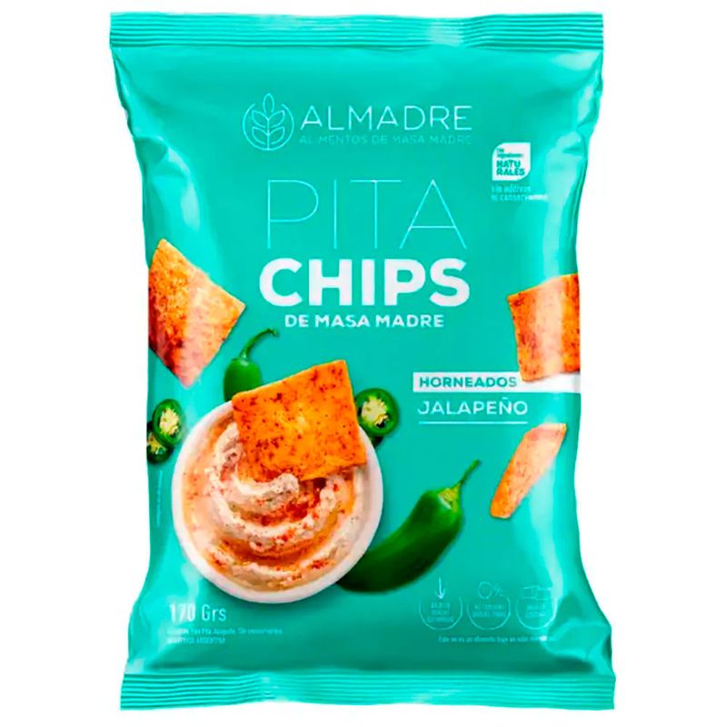 Los Pita CHIPS de Masa Madre Jalapeño Almadre son crujientes snack de pan pita con sabor a jalapeño. Hechos de masa madre para un sabor único, están horneados, no fritos, para un aperitivo más saludable. Estos chips de 170g ofrecen un ligero picante perfecto para satisfacer tus antojos.