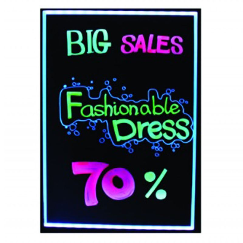 Colocación tanto en forma vertical como horizontal. Se puede borrar y escribir la cantidad de veces que uno desee. Marco de aluminio. Pizarra de vidrio ideal para pubs, restaurantes, barras, comercios, pizzerías, etc.