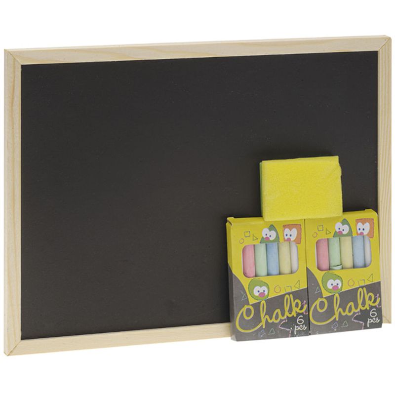 Pizarrón negro con marco de madera 29x21x1cm + 12 tizas