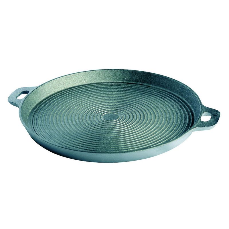 Plancha 35cm redonda con asas hierro, ideal para tu hogar, excelente calidad.