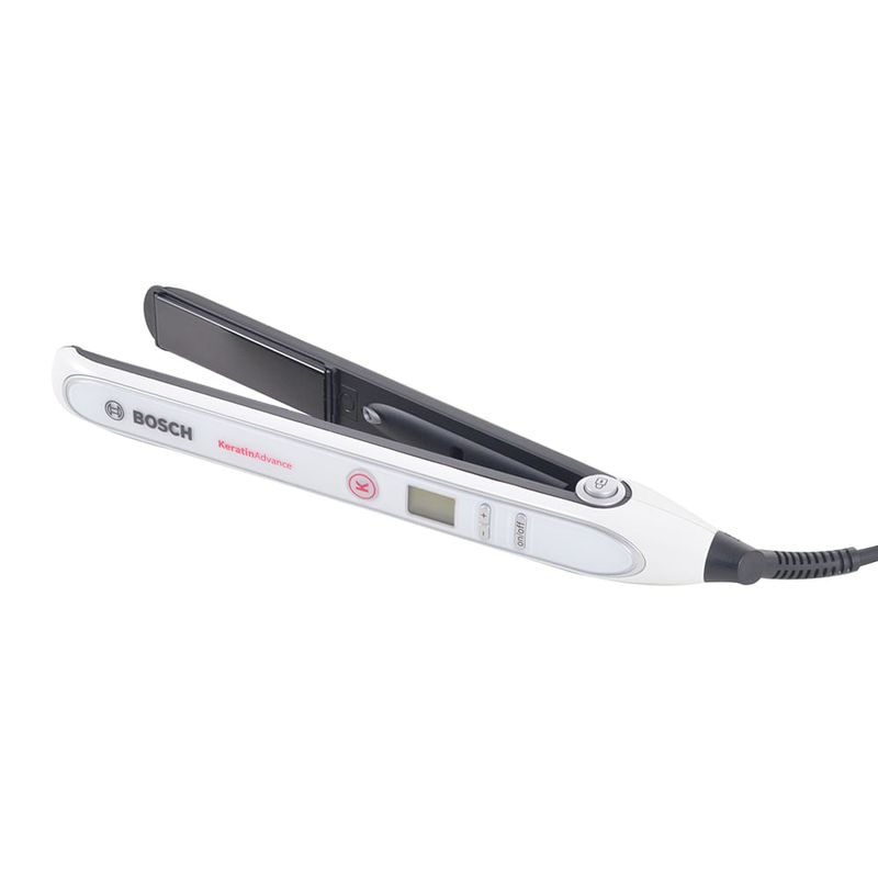 La plancha de cabello Bosch alcanza la temperatura de las planchas profesionales, mientras que el ionizador emite iones de carga negativa que eliminan la electricidad estática, acondicionan el cabello y suavizan las cutículas para intensificar su brillo.