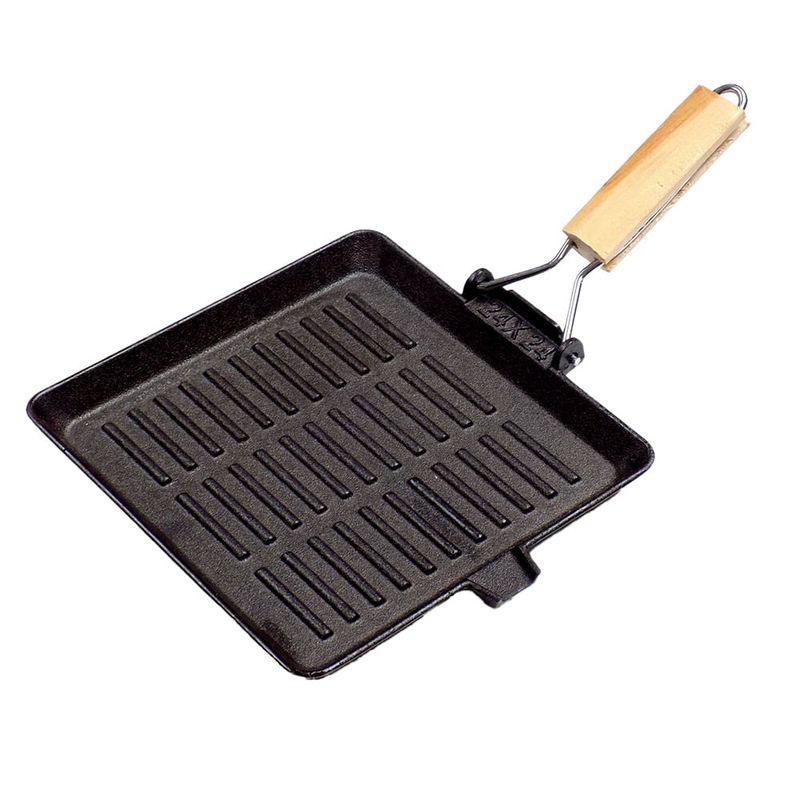 Plancha grill cuadrada con mango en madera 24x24cm hierro, producto de excelente calidad.