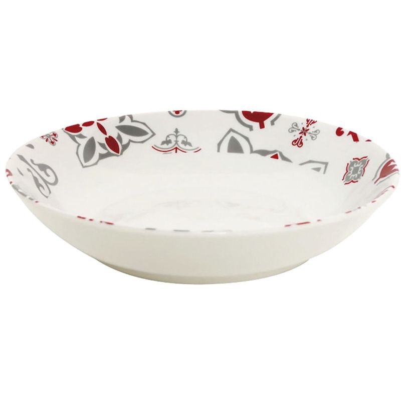 Plato hondo 20cm cerámica blanco con diseño rojo, producto de excelente calidad.