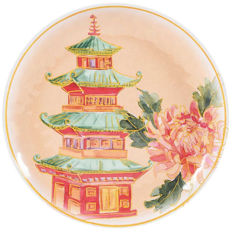 Plato postre flores asiáticas 22,8x2,7 cm melamina