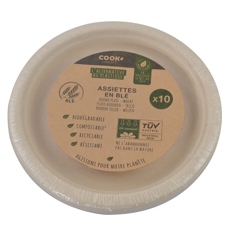 Plato x 10 descartable en trigo 18.2x18.2x2 cm