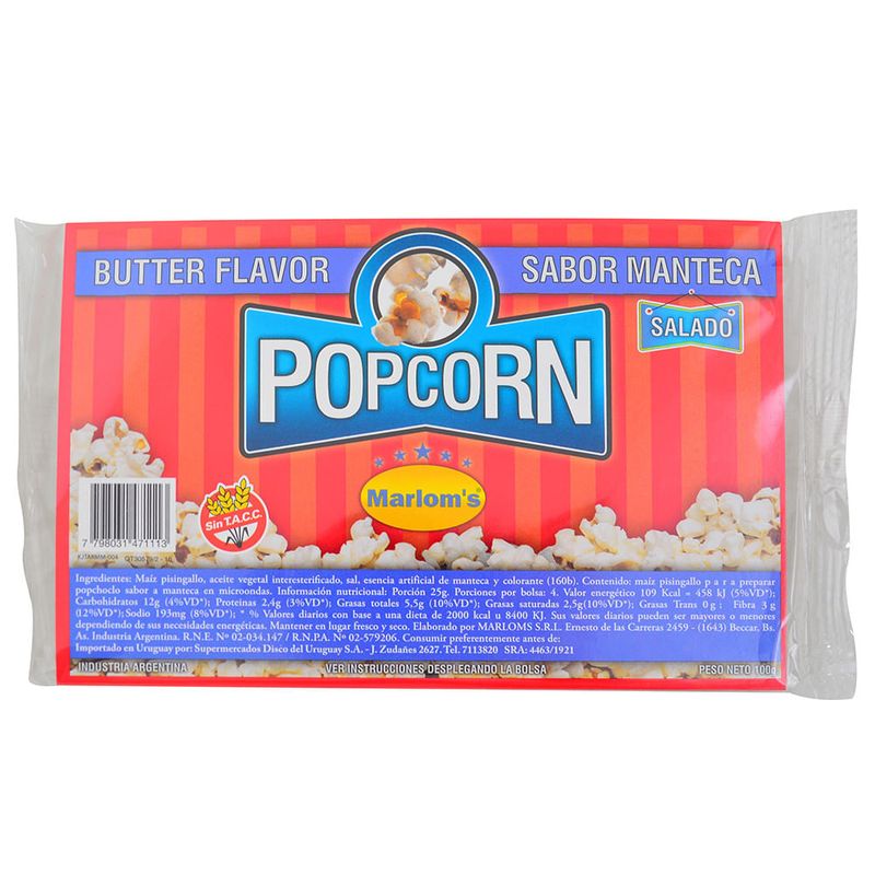 Pop corn manteca MARLOMS 100 g