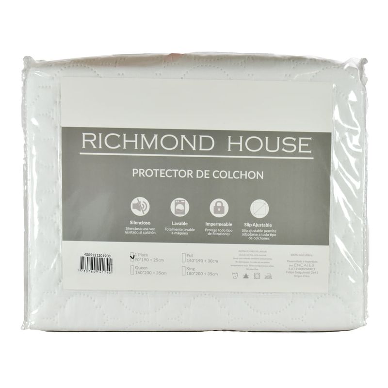 "Protector de colchón Richmond impermeable 90x190 cm. Mantén tu colchón protegido de derrames y manchas. Su tejido impermeable garantiza una larga vida útil para tu colchón."