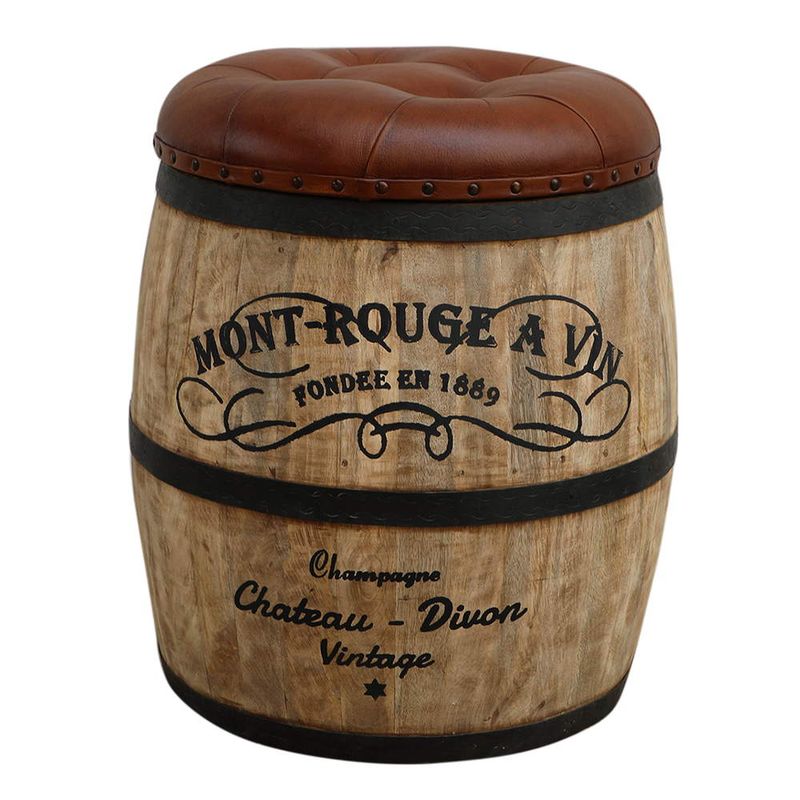 Puff en madera con cuero 46x55 natural. Producto de excelente calidad.