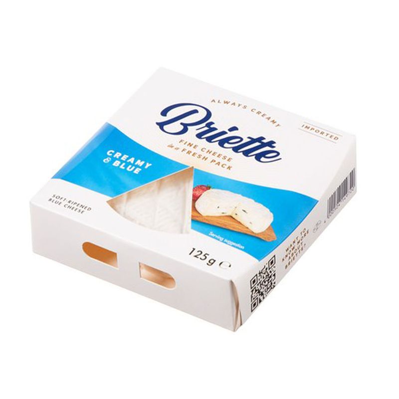 El Queso Brie con Queso Azul BRIETTE es una sofisticada mezcla de sabores, uniendo tener la cremosidad del queso Brie con el carácter del queso azul. Con 125g, es ideal para acompañar vinos o aportar un toque gourmet a las comidas. Un producto de alta calidad para paladares exigentes.